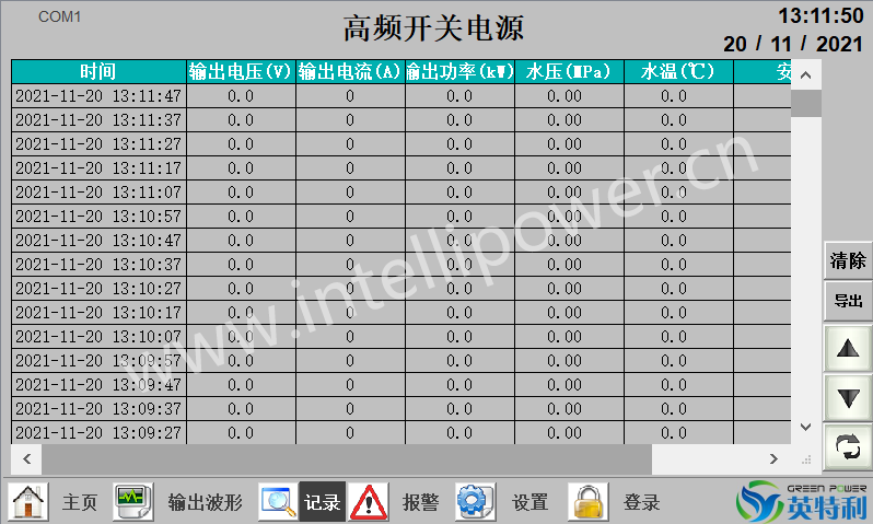 直流电源适用于电镀、电解、阳极氧化、电积、电解精炼、水处理等电化学, 提供稳定的直流电源。直流电源采用高频 IGBT 作为半导体元件,采用 PWM 调 制技术。控制器采用全数字控制芯片,数字采样,数字信号传输,保证在信号传 输过程中的稳定性,控制器具有自检自适应功能:控制器自身故障检测、过热、 过压、过流、欠压保护功能。系统采用模块化结构设计,易于扩大输出电流容量, 多个直流电源模块并联安装,使输出电流更大。触摸屏人机界面使直流电源的显 示和控制变得简单方便,实现了电压电流的设定、工作模式的设定、电源的启停、 运行数据和故障的读取、历史数据的查询等功能。为了便于调试和操作,采用了 直流电源本地控制和远程控制两种模式,触摸屏与主控板通信实现本地控制,通 过profinet协议实现远程控制。