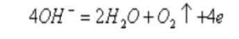 (2)阳极反应。 电解液中的OH- 受阳极的吸引而移向阳极, 最后放出电子而成为水和氧气, 其放电反应为: