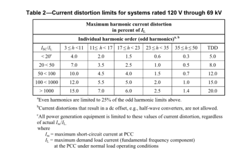 国际上针对谐波的标准为IEEE 519-2014,电流谐波和电压谐波的规定如下: