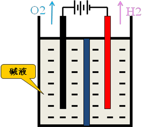 在直流电(5500A 44V)作用于氢氧化钾水溶液时,在阴极和阳极上分别发生下列放电反应,见图: