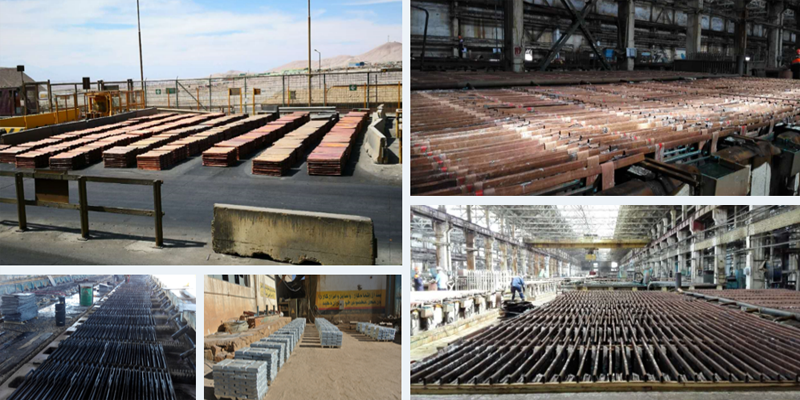 铜的电解提纯:将粗铜预先制成厚板作为阳极,纯铜制成薄片作阴极,以硫酸(H2SO4)和硫酸铜(CuSO4)的混和液作为电解液。通电后,铜从阳极溶解成铜离子(Cu)向阴极移动,到达阴极后获得电子而在阴极析出纯铜(亦称电解铜)。